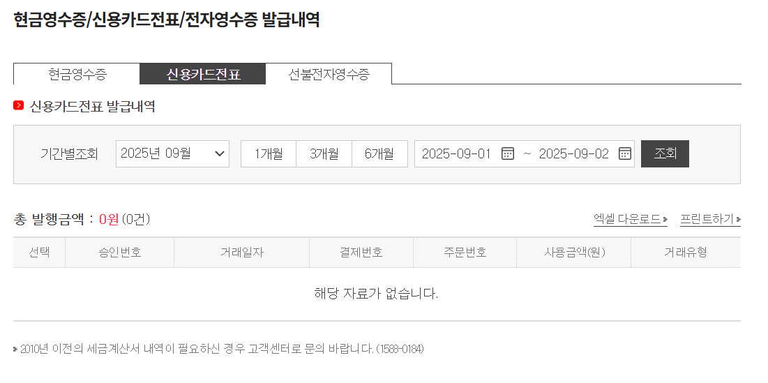 신용카드 전표를 확인 할 수 있다.