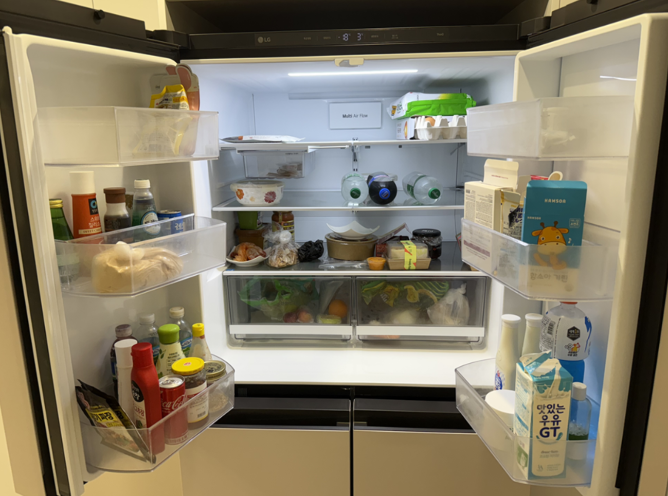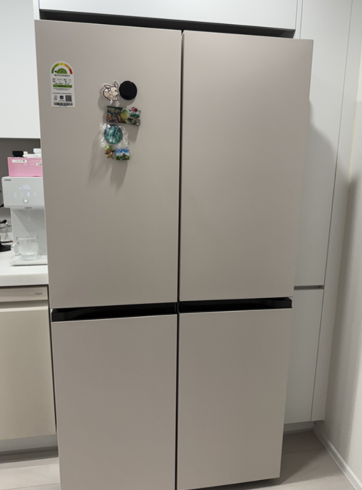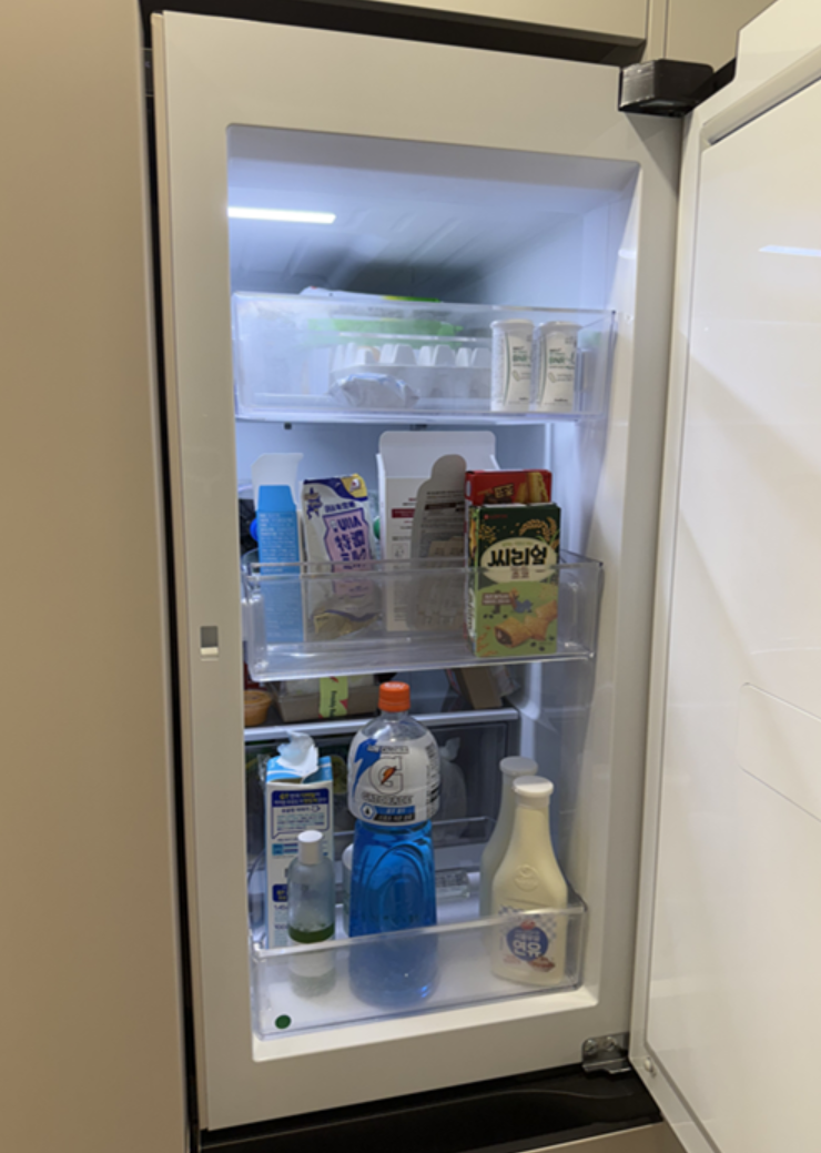 기존에는 작은 냉장고를 쓰다가 큰 냉장고 쓰니 좋다. 넓직하고 외관도 나쁘지 않다.