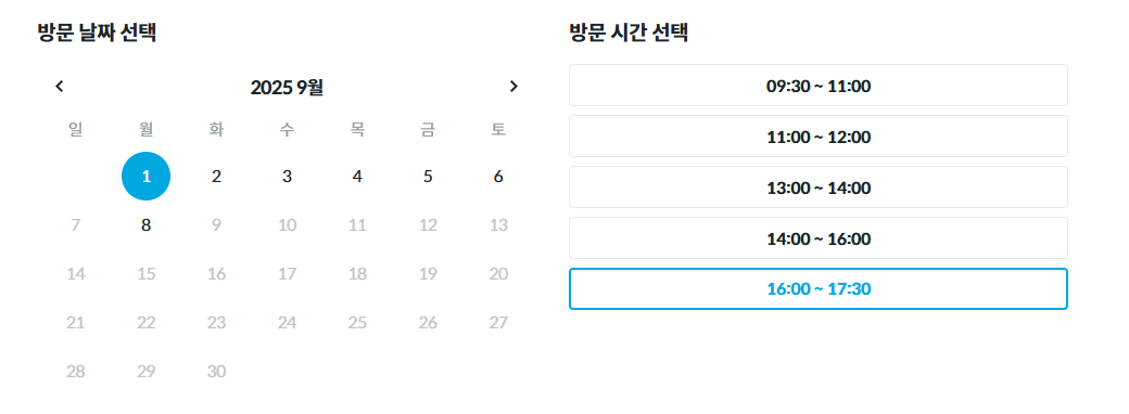일요일 이전은 안되고 방문 시간은 다양하진 않다. 일정에 맞게