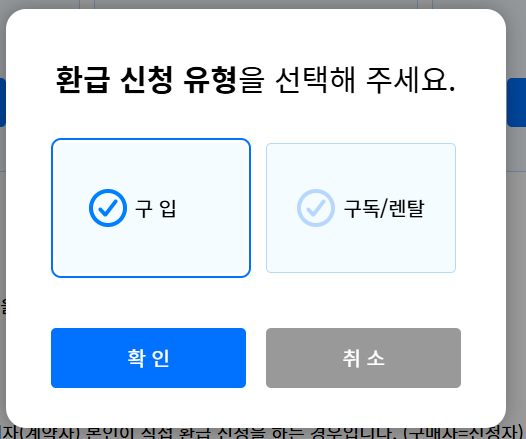 대리신청을 누르면 구입 & 구독/렌탈 이 있다. 구독/렌탈이 있는지 몰랐다.