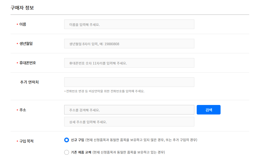 그리고 구매자 정보는 구매한 사람 정보를 입력 하면 된다.