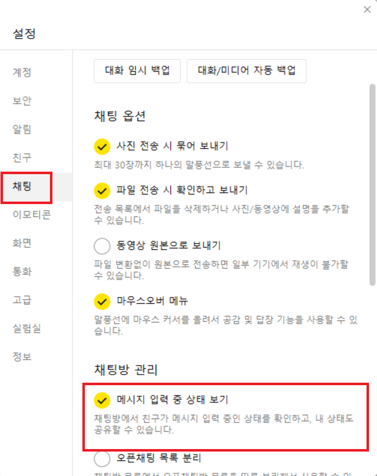 카카오톡 메시지 입력 중 상태 보기 해제 하기