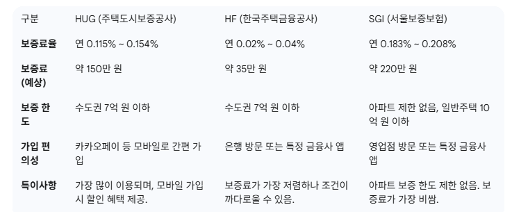 전세 보증보험 종류(HUG, HF, SGI, 카카오)와 예상 금액