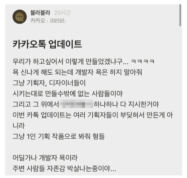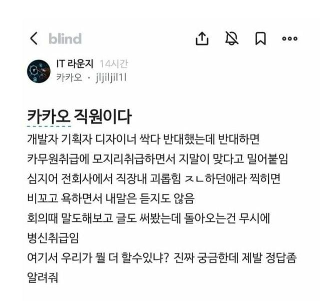 카카오톡은 말그대로 메신저 역할을 했기때문에 이때까지 잘 살아남은것이다. sns 를 하려면 카톡을 안하고 sns 을 하지 왜 카톡을 하나.. 남의 떡어 좋아보이니 그걸 따라하려다 문제가 터진것이다. 요즘 카카오톡에 광고가 엄청 붙어 있던데... 과연 어떻게 될지...