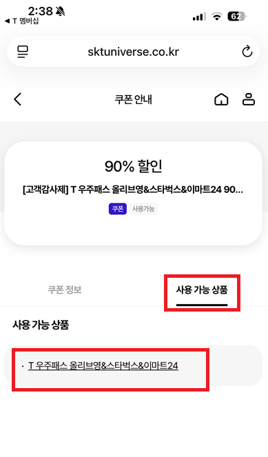 당연한거지만 SKT 텔레콤만 제공된다. 쿠폰 다운로드 하러 가면