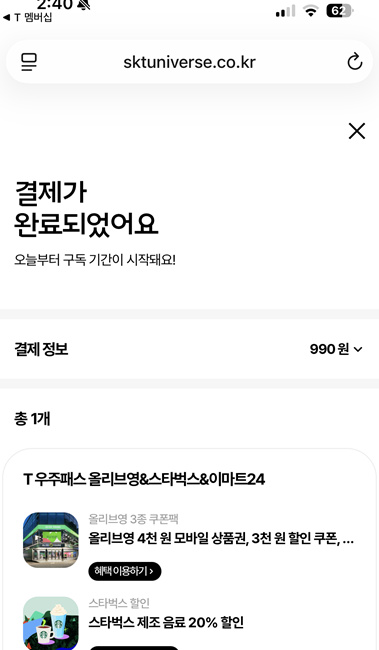 T 멤버십 T 우주패스 올리브영&스타벅스&이마트24 1개월 구독료 90%할인 + 스타벅스 연결 방법