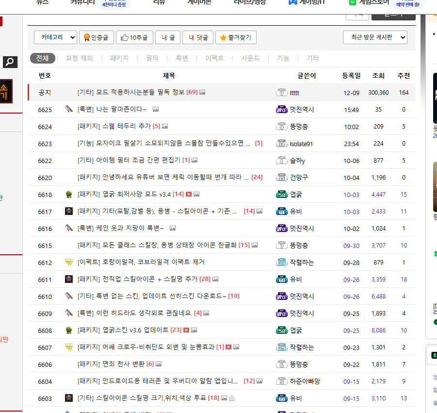 모드들이 요즘은 거의 대부분