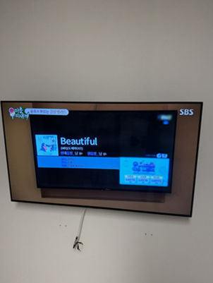 TV아래쪽 안테나 선이 매립이 되어 있어서 안이쁘지만 그냥 이렇게 연결