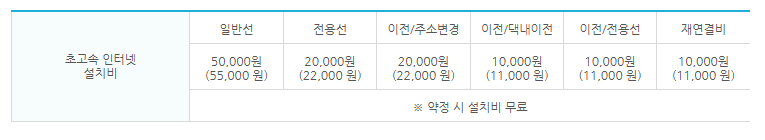 TV + 인터넷 사용중인데 이전비는 따로 부과 된다고 한다. 22,000원+ 22,000원 해서 총 44,000원이다. 참... 이해가 안가는 이전부이긴 한데.. 비싸다.