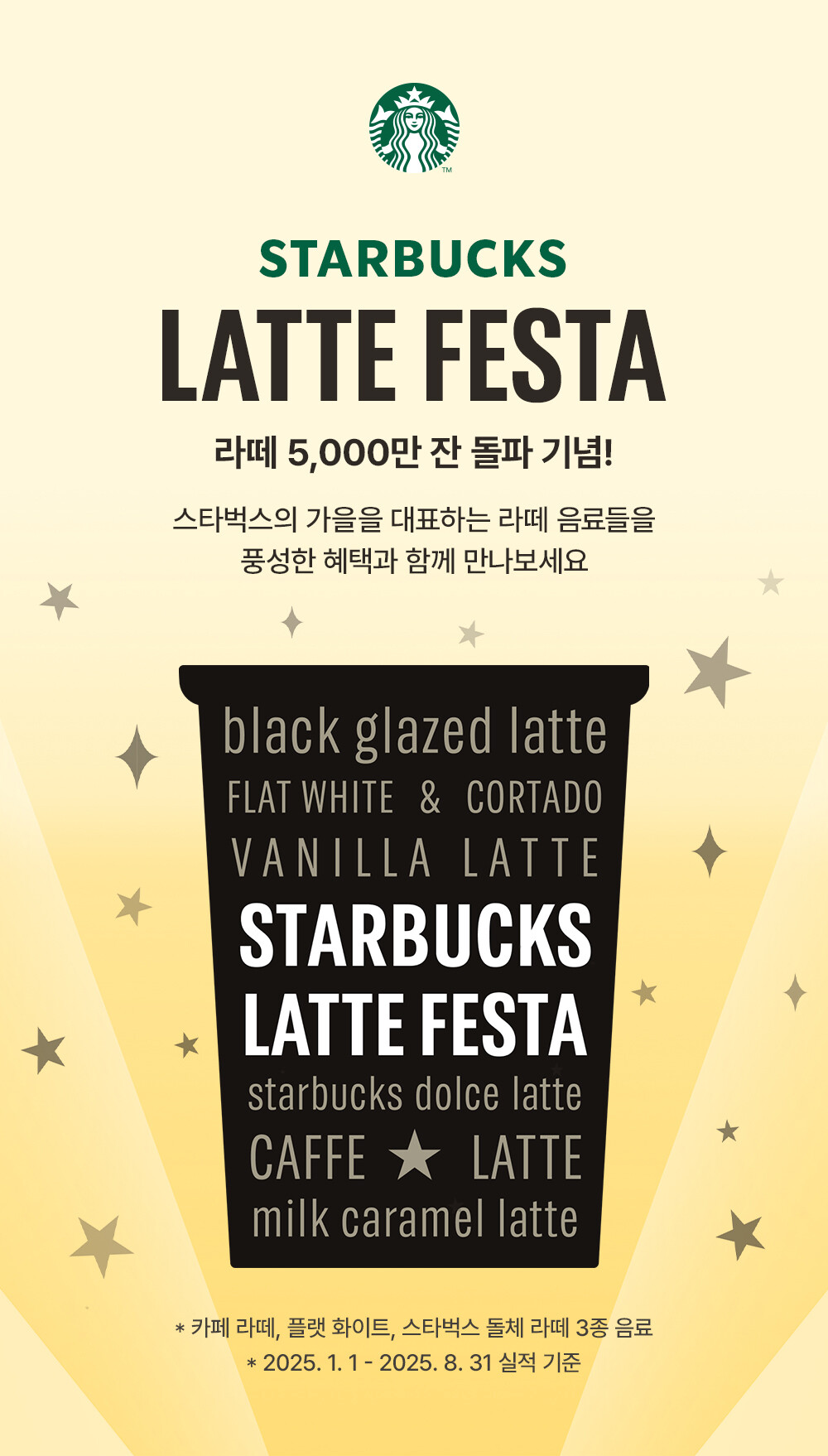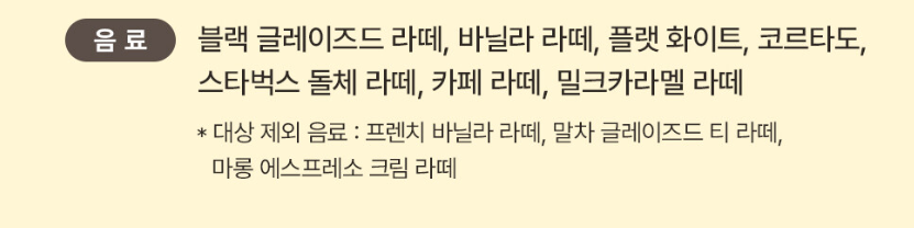 스타벅스 카페라떼, 플랫 화이트, 스타벅스 돌체 라떼 3종 음료 먹은 사람 대상으로 하는 이벤트이다.