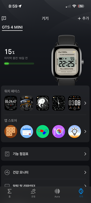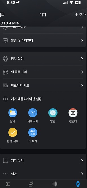 mini 제품은 버튼이 한개 밖에 없어서 운동으로 들어가는걸 여러번 눌러야 한다.