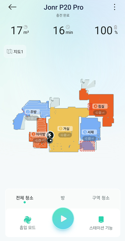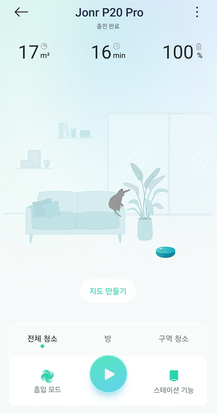 이렇게 청소가 되는것이 보인다. 그리고 청소 제한 구역도 설정가능하고 다양하게 설정이 가능하다.