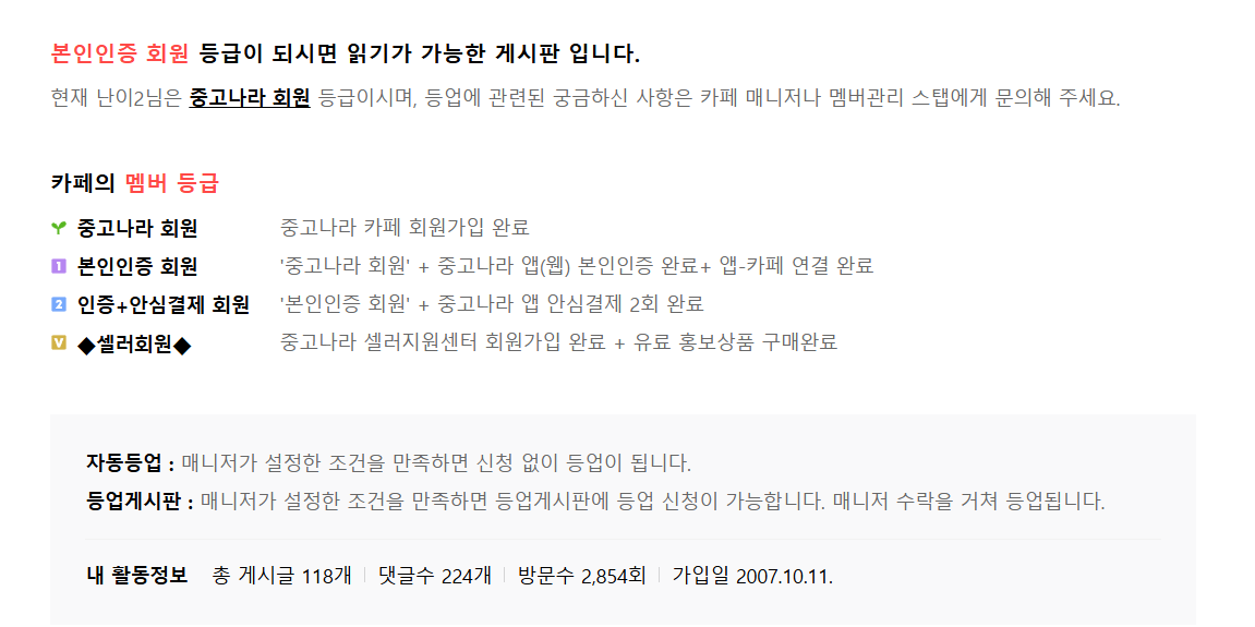 [필독] 본인인증 회원 등업방법 안내