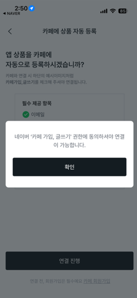 네이버 카페 등급 올리기 '네이버 카페 가입 글쓰기 권한에 동의하셔야 연결 이 가능합니다'