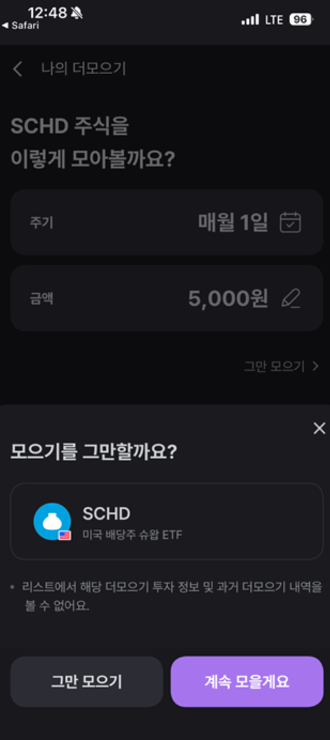 그리고 관리에 들어가서 그만 모으기로 해지 해주자.