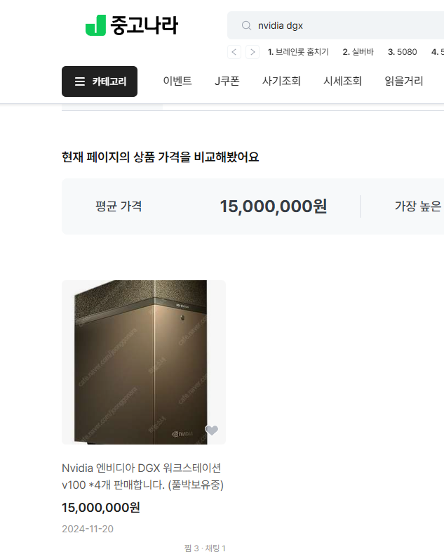 그나마 중고나라에 1500만원에 올라온게 하나 있다. 당연히 저금액으로는 못산다.