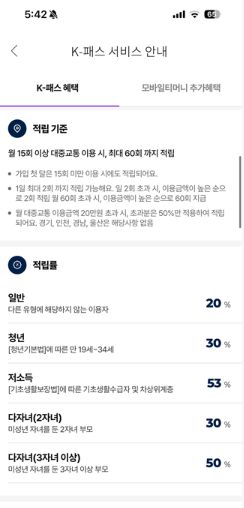 K-패스는 위와 같이 사용한 금액에 대해서 적립이 되고