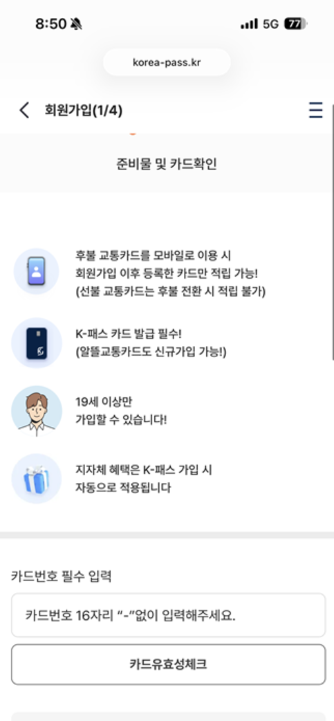 그런데 이렇게 만 하고 끝내면 할인을 받을 수 없고 K-패스 홈페이지에 내 교통카드를 등록해줘야 한다.