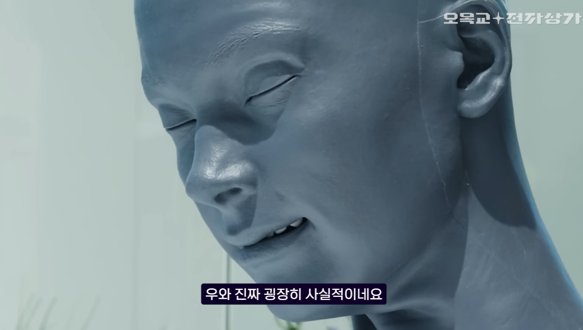 와.. 영상으로 보지만 피부나 질감이 너무 사람 같이 보인다. 피부색이 동양인이나 서양인 피부였으면 더 사람 처럼 보였을것 같다. 왜 저런색의 피부로 했는지 이유가 있겠지