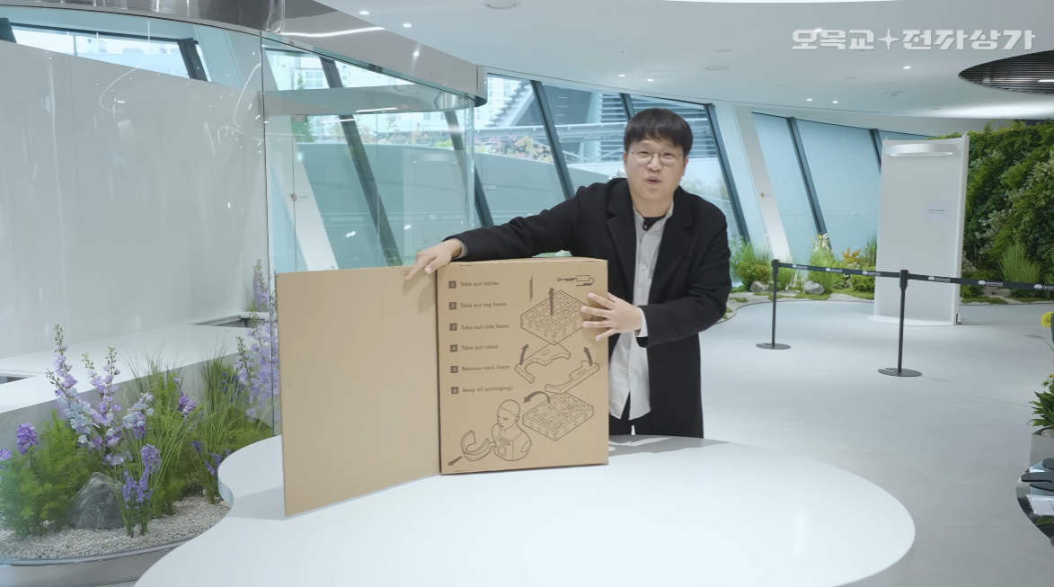 전시회를 하기 위해서 이 로봇이 들어왔다고 한다.