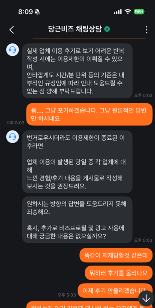 당근 집 근처 후기 쓰기 어뷰징으로 인한 제재 후기