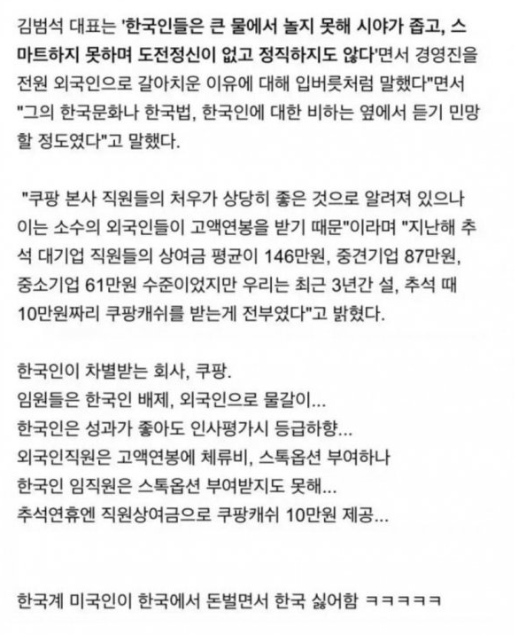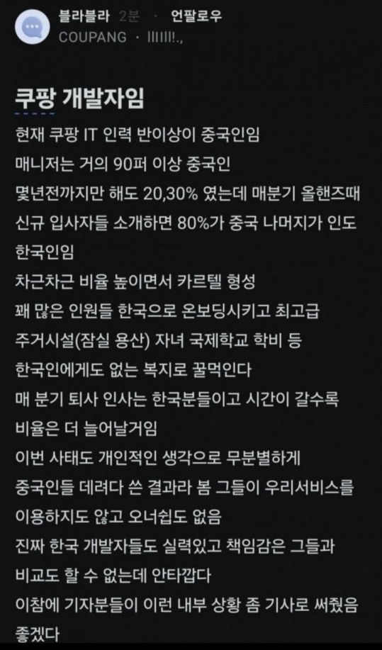 그리고 개인정보 우출이 중국인 직원 소행이라는 물타기까지 나온다. 중국인이던 북한이던,러시아던 뭔 의미가 있나 취약점이 있어서 털렸는데 남탓을 하는건 참 잘한다.
