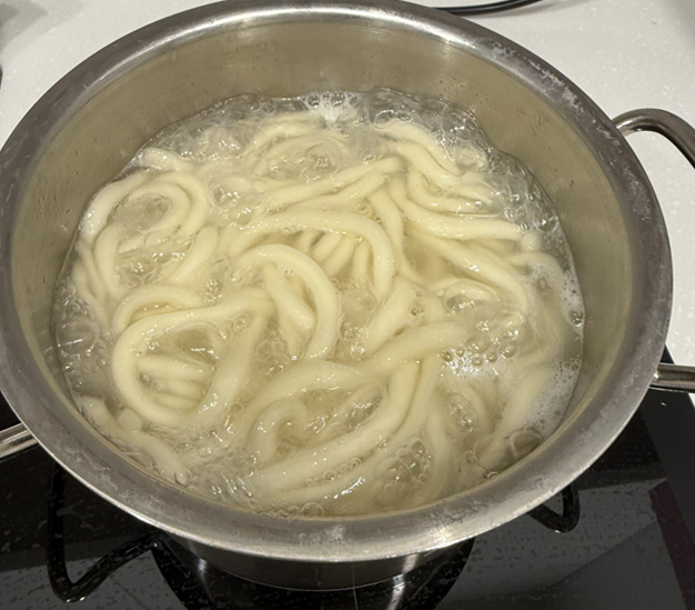 해초붓카케우동 with 그리팅 331g 이고 5,100원에 구매 했다.우동면과와사비 해초+소스 이다. 솔찍히 구성품은... 너무 없어보인다. 이게 5,100원이면 너무 비싼듯하다.끊은 물에 우동면사리를 넣고 5