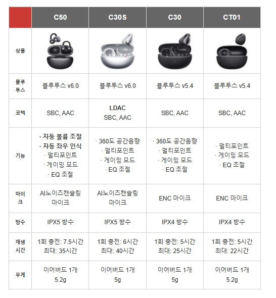 C30 C30S C50등 다양한게 나왔는데 성능은 C30S 가 제일 좋다고 한다. 뭐 막귀라 무난한 제품을 구매해봤다. C50
