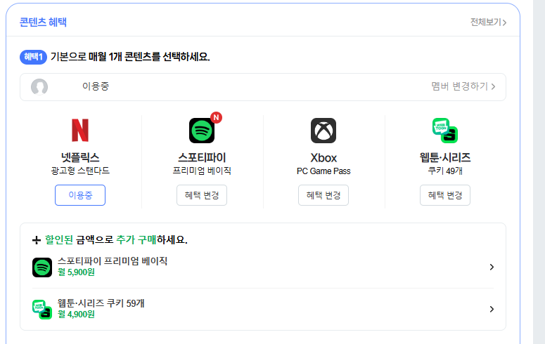멤버십이 5,900원이지만 다양한 혜택이 있고 넷플릭스 하나만 봐도 이득 보는것이다. 심지어 네이버쇼핑 10프로 추가 적립까지 생각한다면 필수가 될것이다.