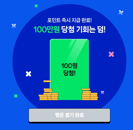 ㅠ.ㅠ 100원 당첨이다 아쉽다.