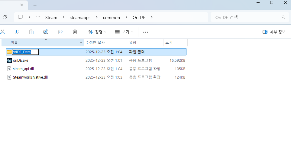 위와 같이 폴더가 나오고 oriDe_Data 폴더에 방금 압축푼 파일들을 넣어주면 된다.