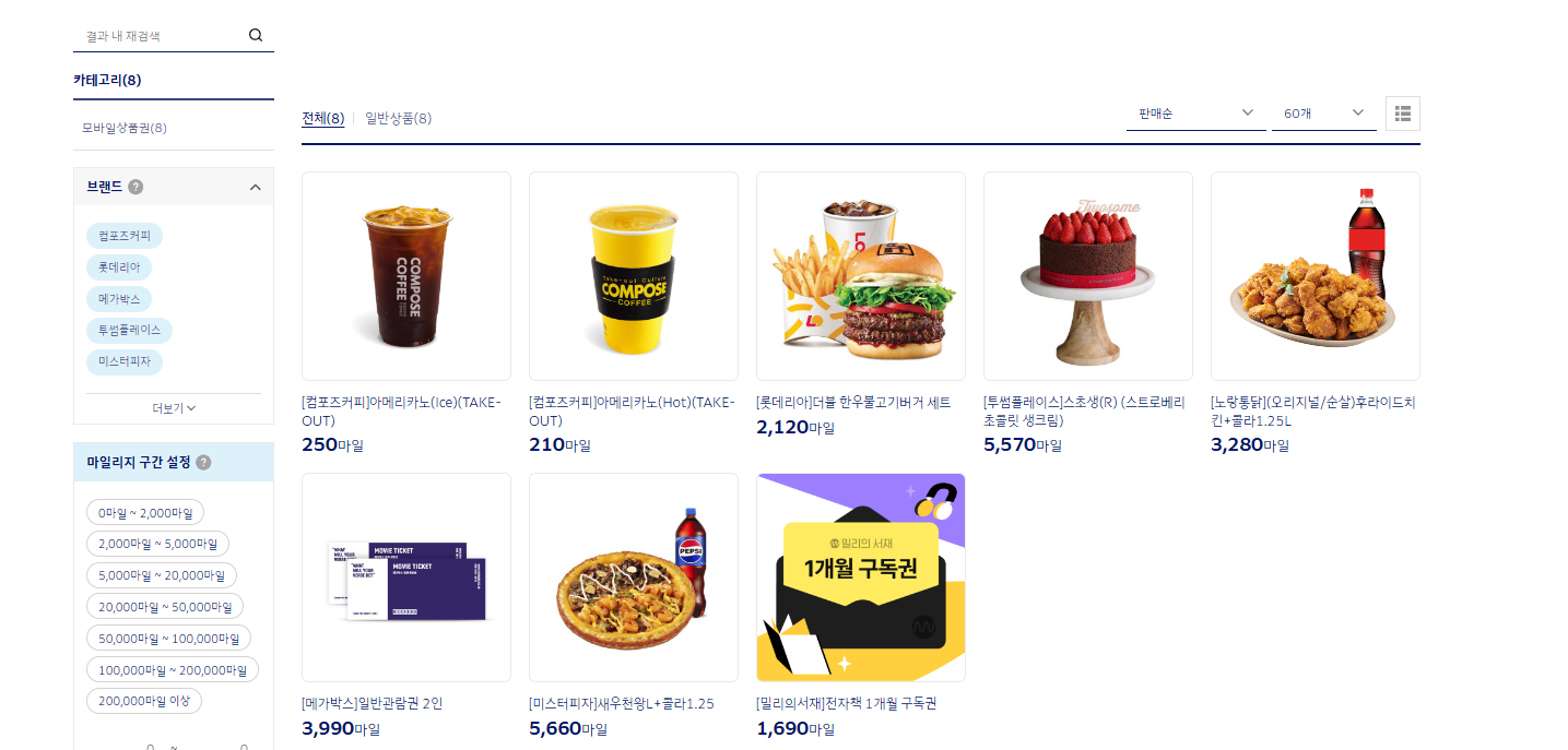 다양한 제품을 판매를 하는데 마일리가 높은 제품이 가성비는 좋아 보이긴 한데.. 계산하기 귀찮고 하니 상품권으로 교환을 해보자.