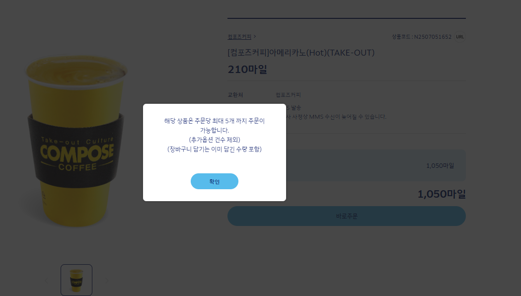 하지만 구매 제한 수량이 5개 다. 아시아나처럼 치사하다고 욕을 하려고 하다가 한번에 구매 할수 있는 수량이5개 이고 여러번 구매 가능하다.