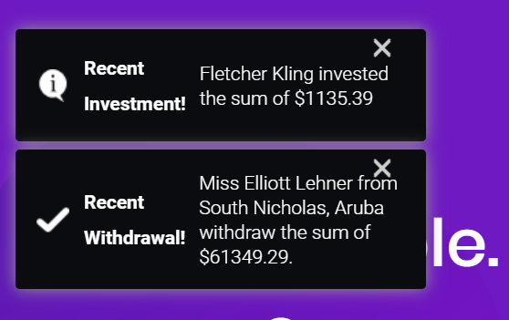 중간 중간에 이런 메세지가 나온다. 뭔가 실시간으로 거래가 이루워지는것 처럼 보인다.