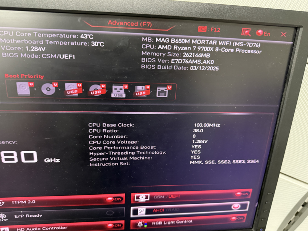 X870E 토마호크 WIFI 모델로 구매해서 셋팅을 했다.