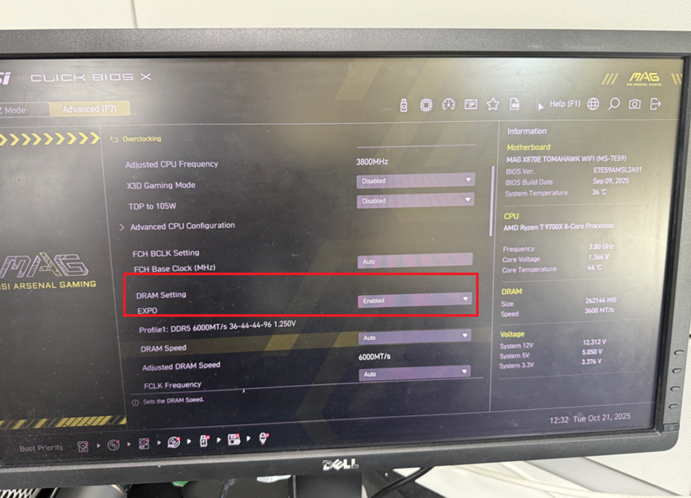 기본은 3600MT이라 XMP 활성화 해줘야 6000MT활성화가 된다.