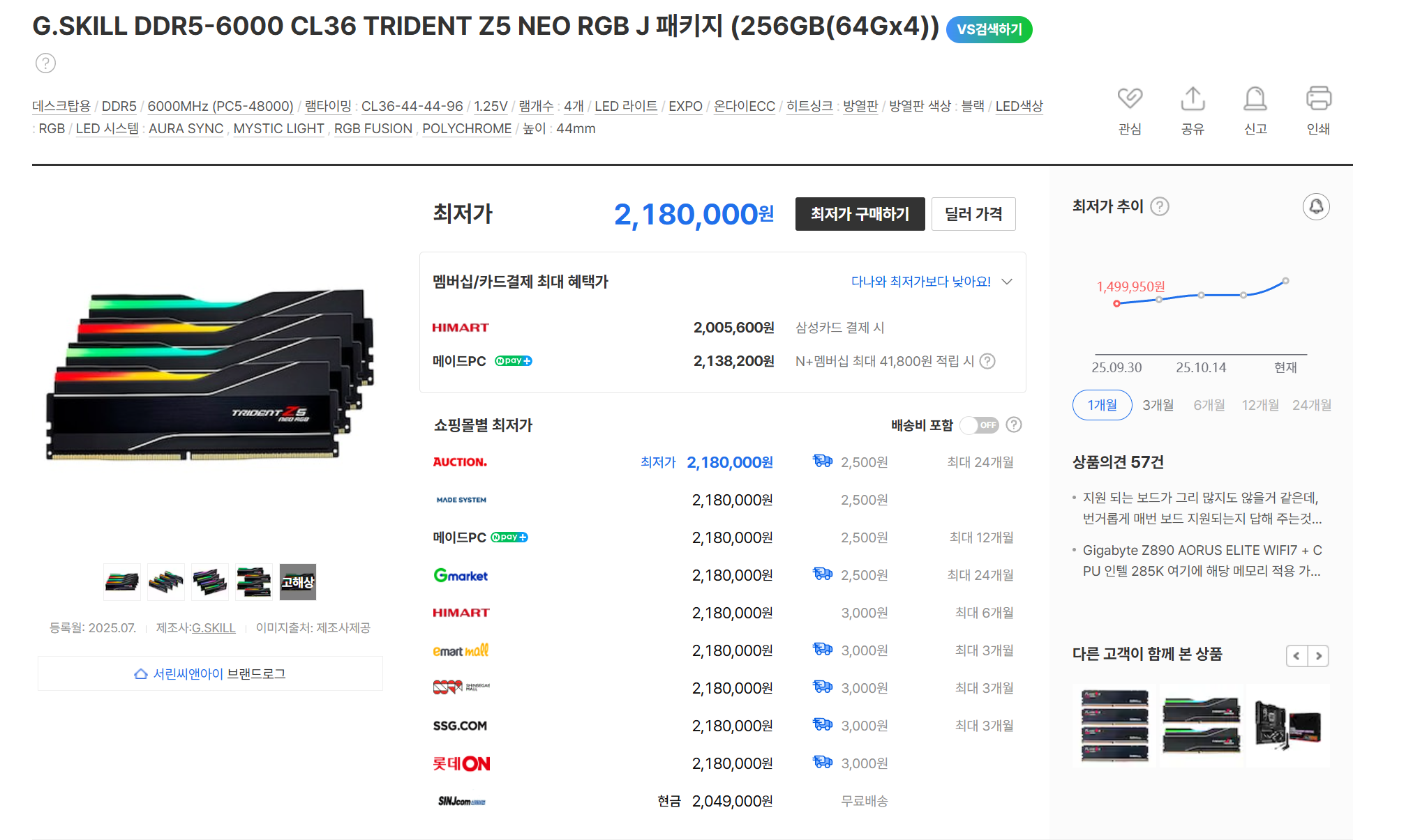 지스킬 G.SKILL DDR5-6000 CL36 TRIDENT Z5 NEO RGB 사용후기