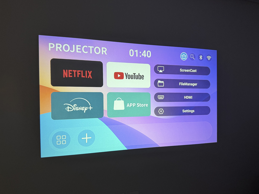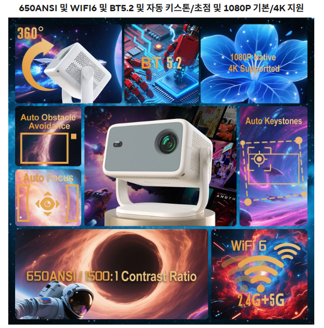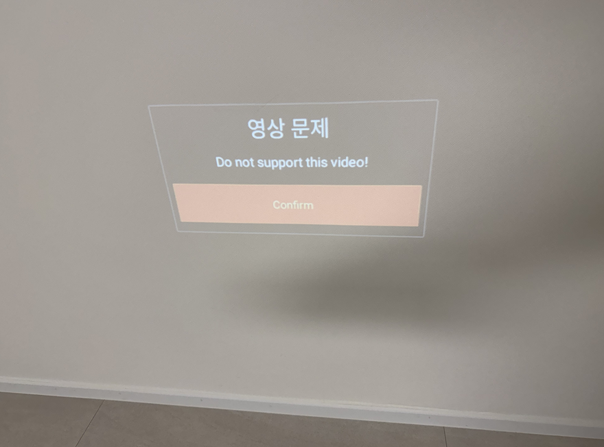 유튜브 4K 영상을 봤는데 나쁘지 않다. 스크린이 없어서 마땅한곳이 없었지만 대각선 230cm 되는곳에 흰벽면이 있어서 쐈는데 딱 맞는다. 대략 100인치 정도 되는듯 하다.