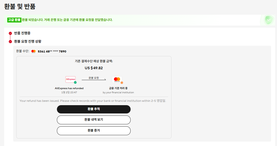 그래서 고민하다가... 알리의 무료 환불 신청!!!