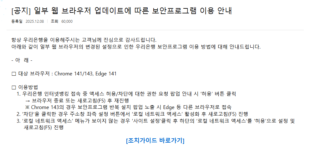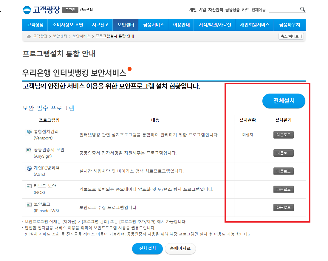 우리은행 보안프로그램 설치 무한 반복 해결 방법