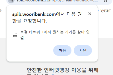 설치 페이지에 갔을때 주소왼쪽 버튼을 눌러서 로컬 네트워크 액세스 설정을 활성화 해주면