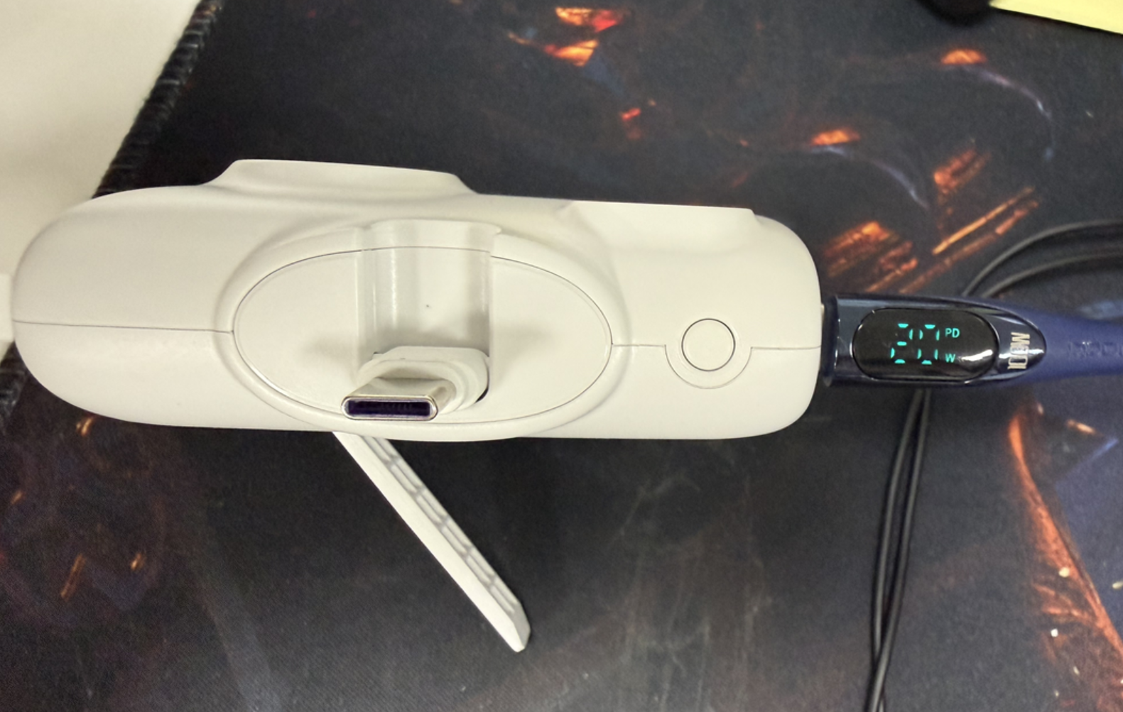 뒷면에 거치대가 있고 충전시 최대 20W 까지 충전된다.