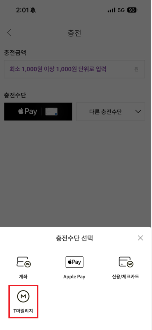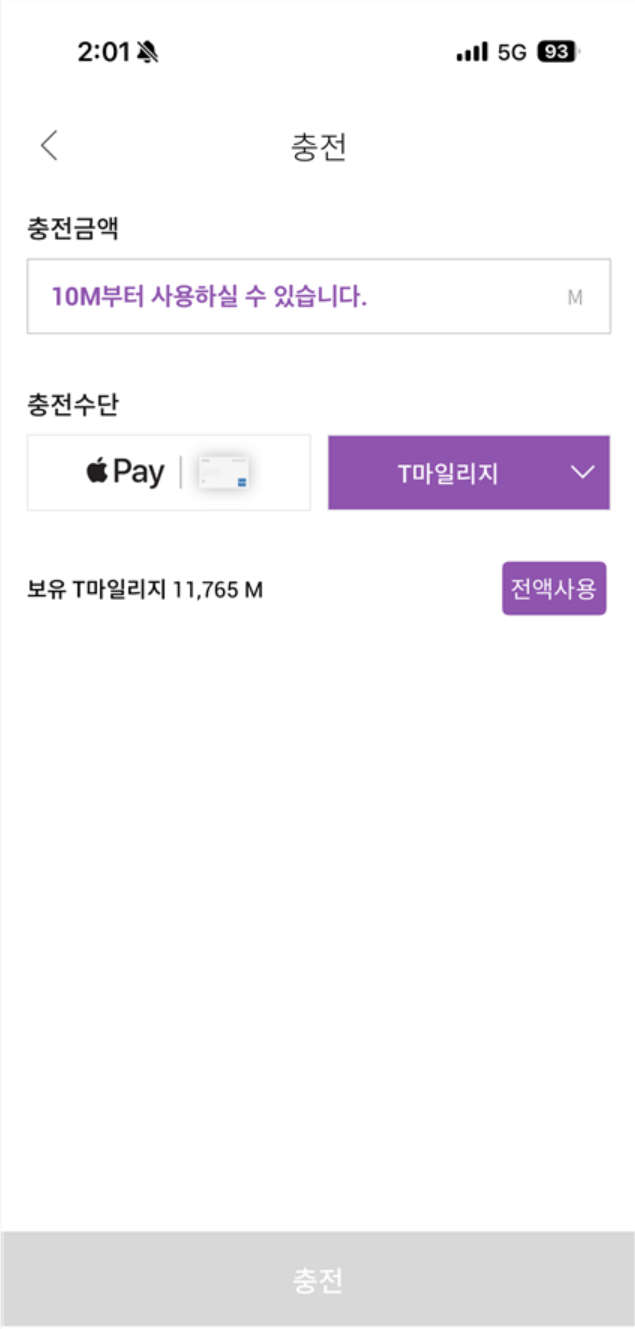 마일리지로 충전을 할 수 있다.