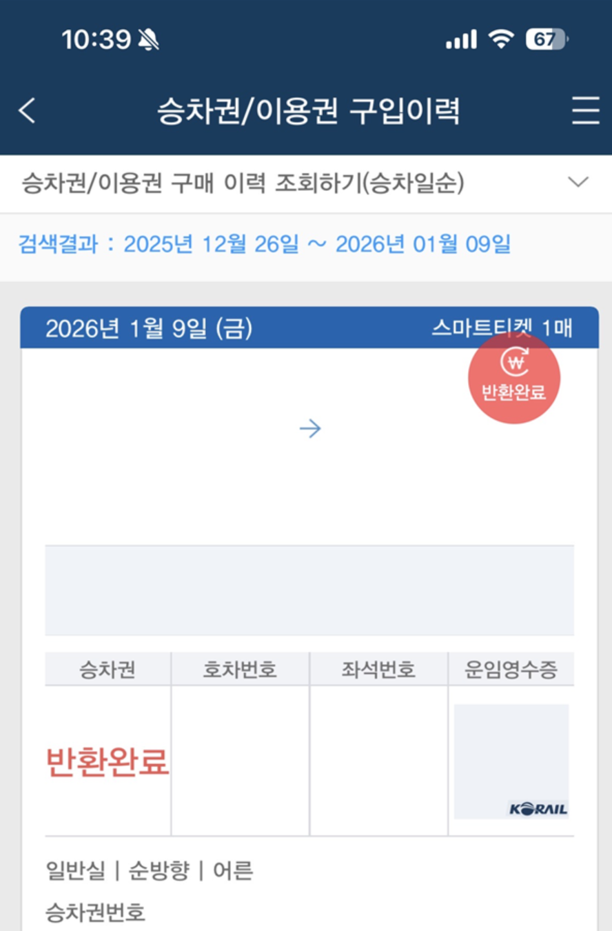 순간 어라? 내 기차는 9시 45분인데?? 어떻하지?? 하면서 부랴부랴 다음 기차를 예매를 했고 9시 45분 기차를 취소를 하려고 했는데