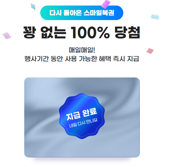 꽝이 없고 쿠폰 or 스마일캐시가 들어오는데 매일 복권을 할 수 있다.
