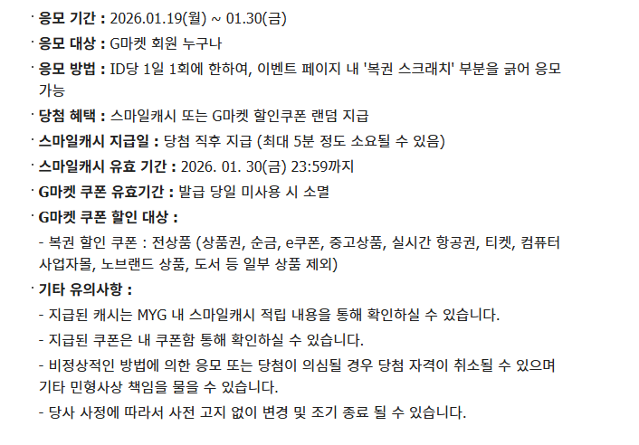 | 지마켓 다시 돌아온 스마일복권 (2) | 2026.02.01 |