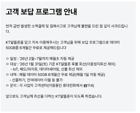 KT 고객 보답 이벤트 (해킹으로 인한 보상)