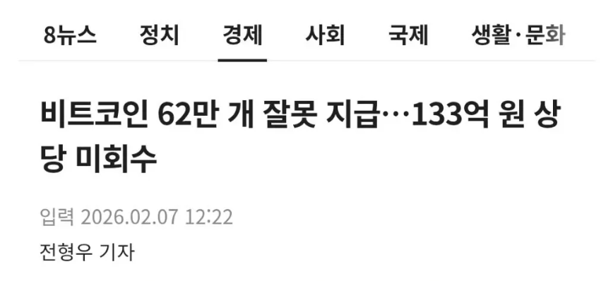 빗썸 이벤트로 695명에게 2천원 지급 지급 이벤트인데 잘못해서 비트코인 2,000개가 지급이 되었다.