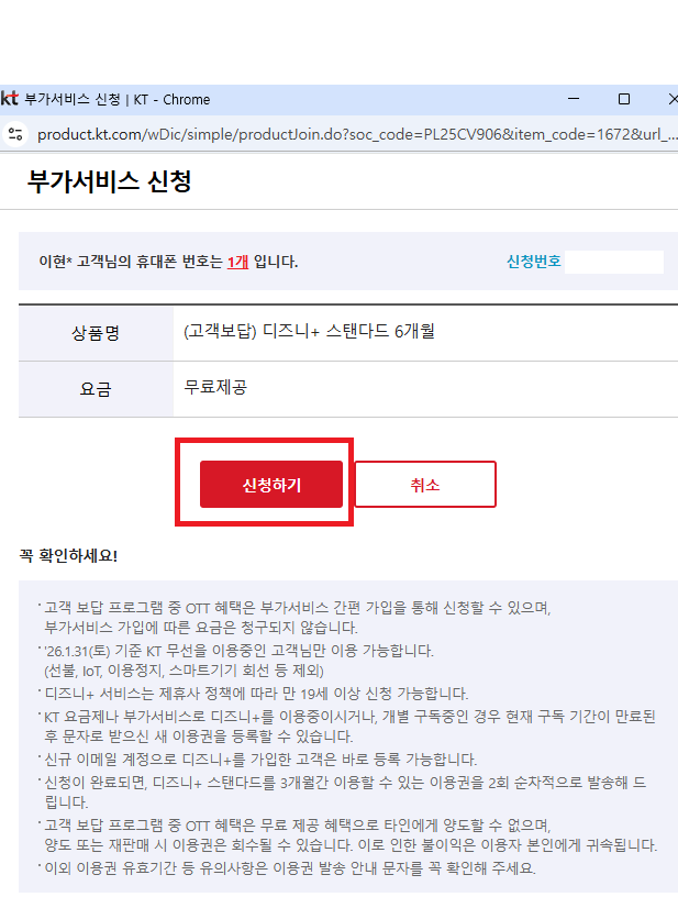 KT 티빙 또는 디즈니+ 이용권 6개월 신청 방법