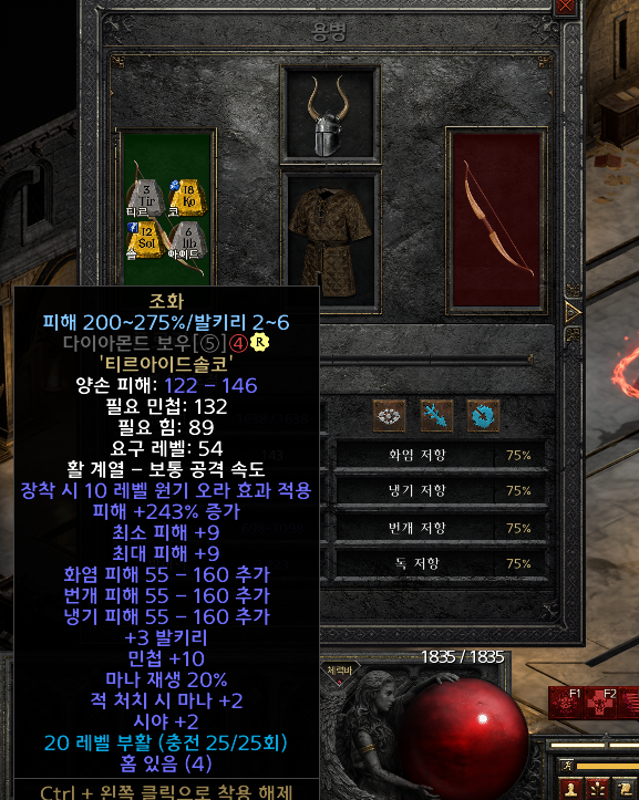 디아블로2 레저렉션 스타터로 보통 소서를 많이 하는데 악마술사를 스타터로 하기에 부족함이 전혀 없다.